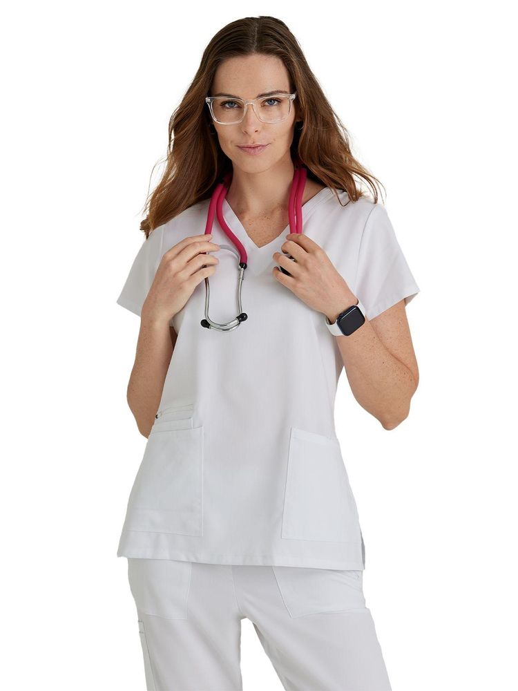 Clean and effortless, Barco Unify women's tops are crafted from our premium Luxe360 fabric. Our stretch twill has enough body for all the beautifully tailored details, but with a soft, supple drape and 4-way stretch that moves with you. This basic V-neckline is the top that you'll want to wear everyday.
