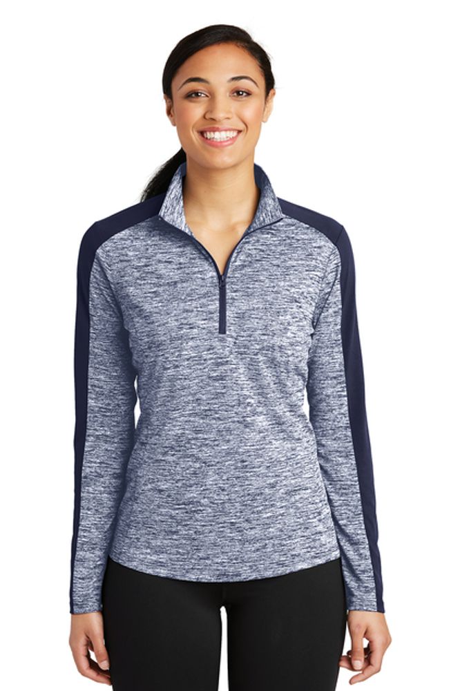 This lightweight pullover locks in color, wicks moisture and has an amped up colorblock look.