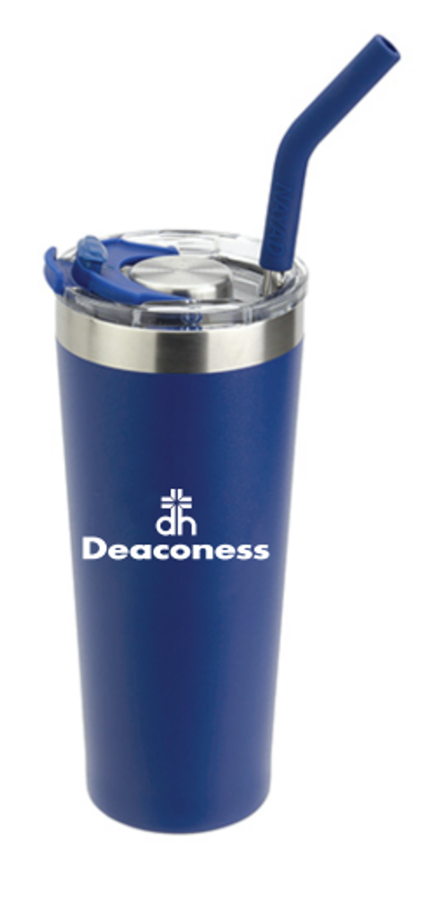 NAYAD® Trouper 22 oz Stainless Double-wall Tumbler with Straw is made of 18/304 rust-free stainless steel construction, double-wall insulated tumbler. Copper-lined to keep beverage hot for up to 7 hours and cold for up to 12 hours. Condensation-free surface and fits perfectly in a car cup-holder. Tumbler comes with a metal straw, color matched silicone straw sleeve and cleaning brush. Cup holder friendly. FDA certified. 8" H x 3" Diameter